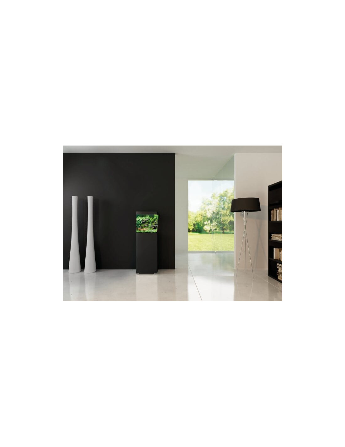 Oase Styleline 85 est un kit complet de 75L, composé d'un aquarium, d'une armoire, d'un filtre avec chauffage intégré et d'un kit d'éclairage LED.