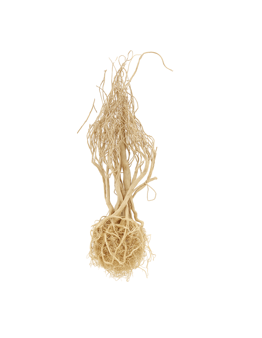 La photo montre la racine à l’état sec ; une fois immergée, elle s’ouvrira et prendra sa forme définitive.