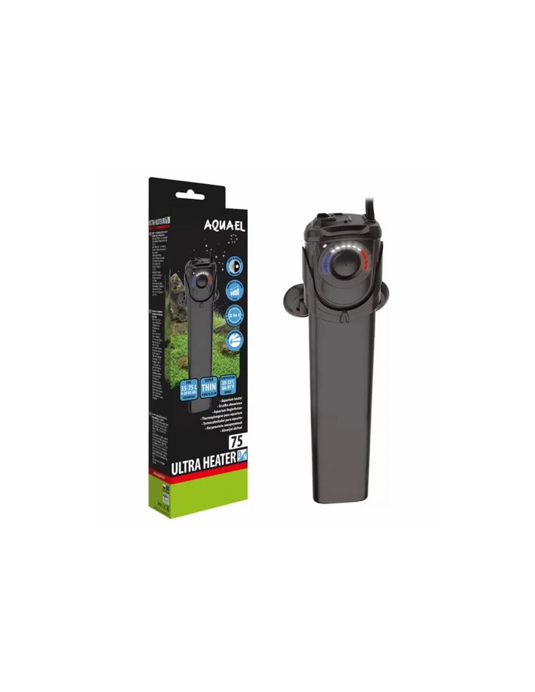 L'Aquael Ultra Heater 75W est magnifiquement conçu et facile à utiliser grâce au système ONE-TOUCH.