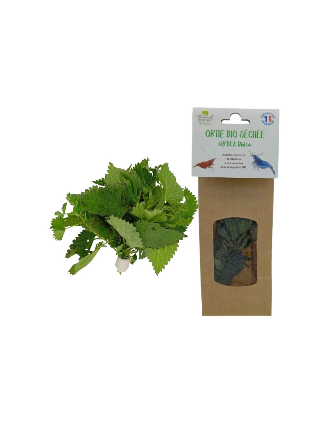 L’ortie BIO (Urtica dioica) est séchée et présentée sous forme de bouquet fixé sur un support lesté avec une bague en céramique.
