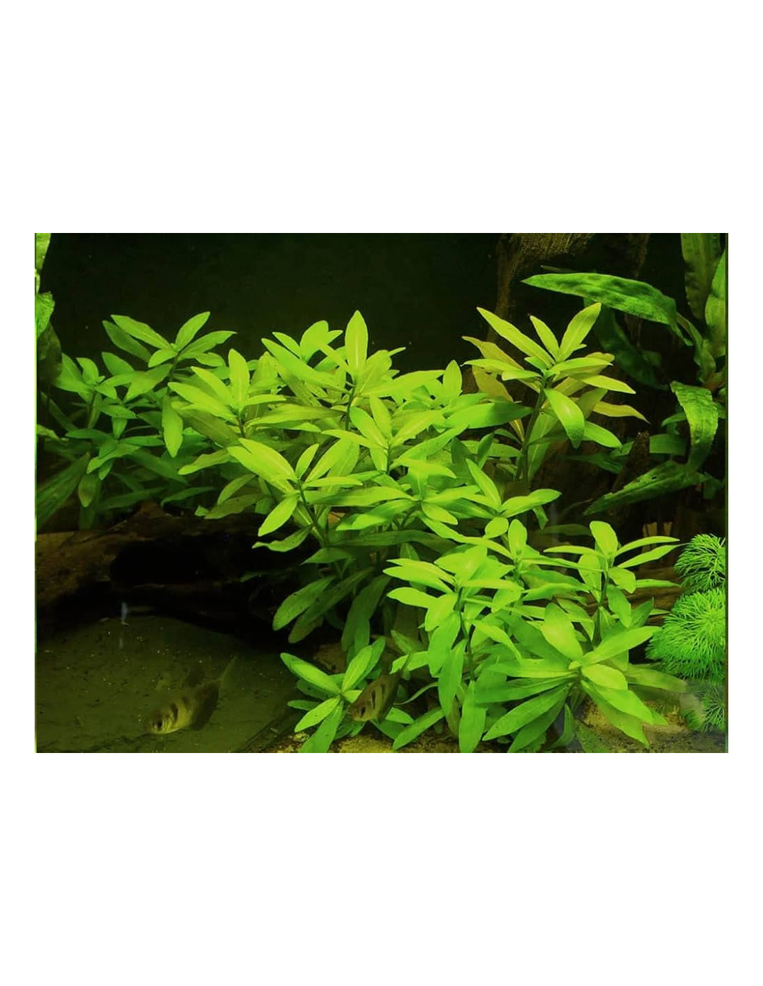 Feuilles : fines, ovales, vert clair à vert doré, pouvant rosir sous forte lumière Taille : 20–40 cm Température : 20–30 °C pH : 5,5–8,0 GH : 2–20 Éclairage : Faible à fort — lumière intense pour des teintes plus chaudes Croissance : Très rapide, l’une des plus rapides en aquarium Substrat : Peu exigeante, accepte tout type de sol Placement : Arrière‑plan ou zone médiane haute selon la taille du bac