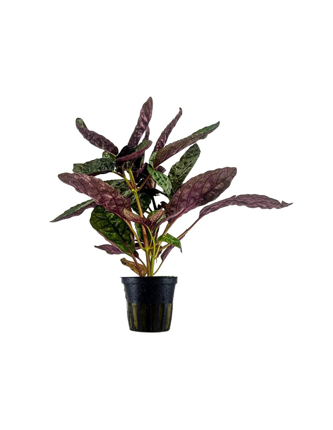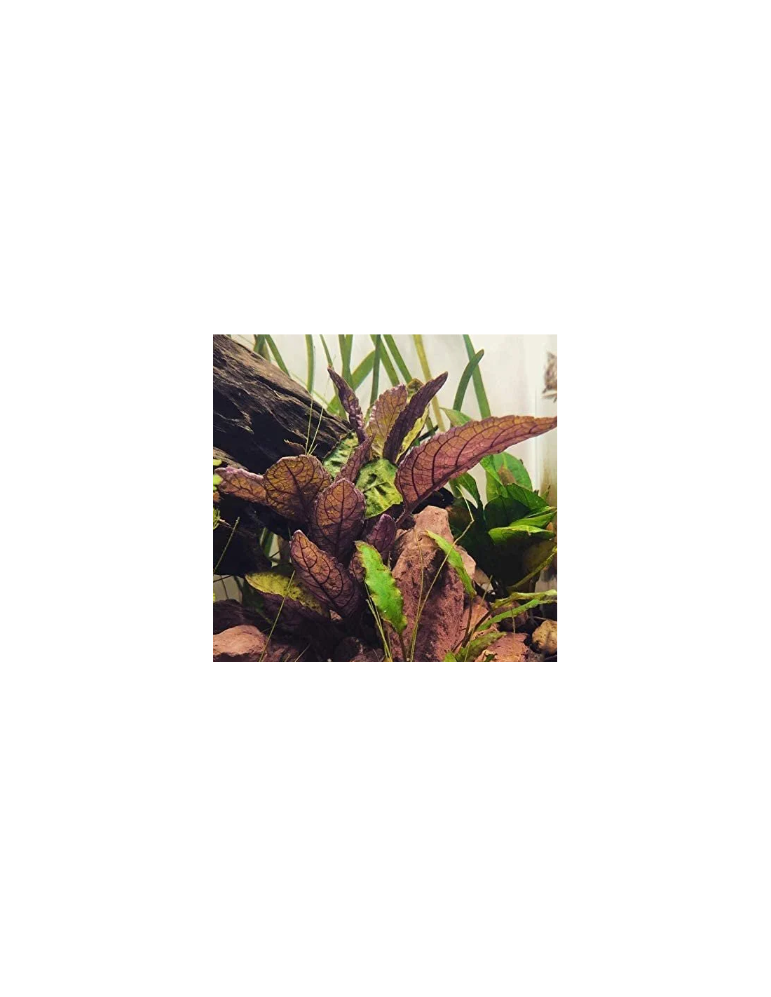 Hemigraphis colorata est une plante très décorative appréciée pour ses feuilles aux reflets violets et métalliques, qui apportent une touche originale et contrastée dans l’aquarium.
