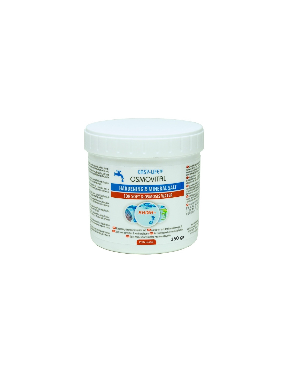 OsmoVital est un sel minéralisant et durcissant hautement soluble, conçu pour reminéraliser l’eau osmosée, déminéralisée, l’eau de pluie filtrée ou une eau du robinet trop douce.