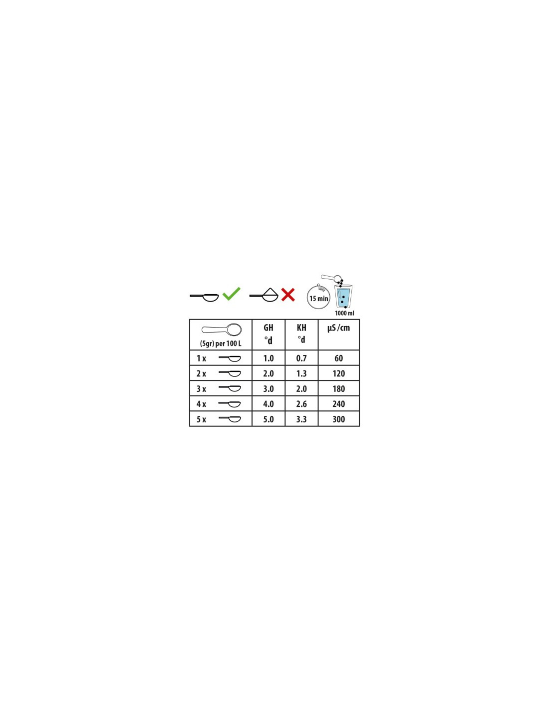 Ajouter la quantité nécessaire pour atteindre le GH et KH souhaités selon votre volume d’eau.